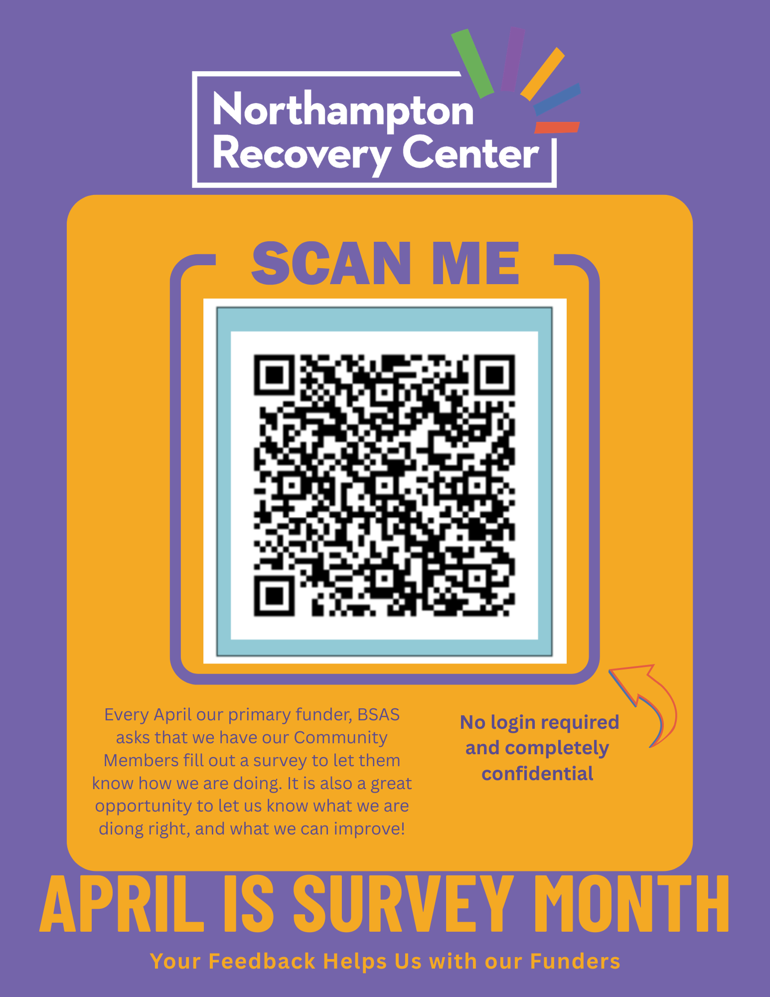 Please help support the NRC by filling out this 10-15 minute online survey. It is completely confidential & can be accessed by clicking on or scanning the QR code. Completing this survey shows are funder how we are serving the community and carrying out our mission. Your help is greatly appreciated! Anyone who has visited the center or accessed services here is encouraged to participate. Thank You!